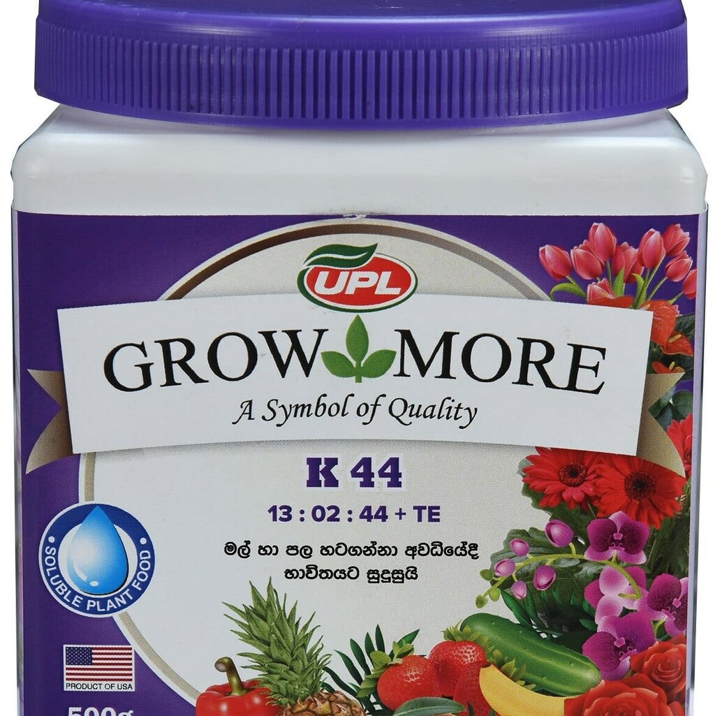 Grow More K44 (13.2.44+TE) is a 100% water-soluble, high-quality fertilizer manufactured by Grow More Inc. USA. With its high potassium content, K44 effectively stimulates flowering and enhances crop yield.